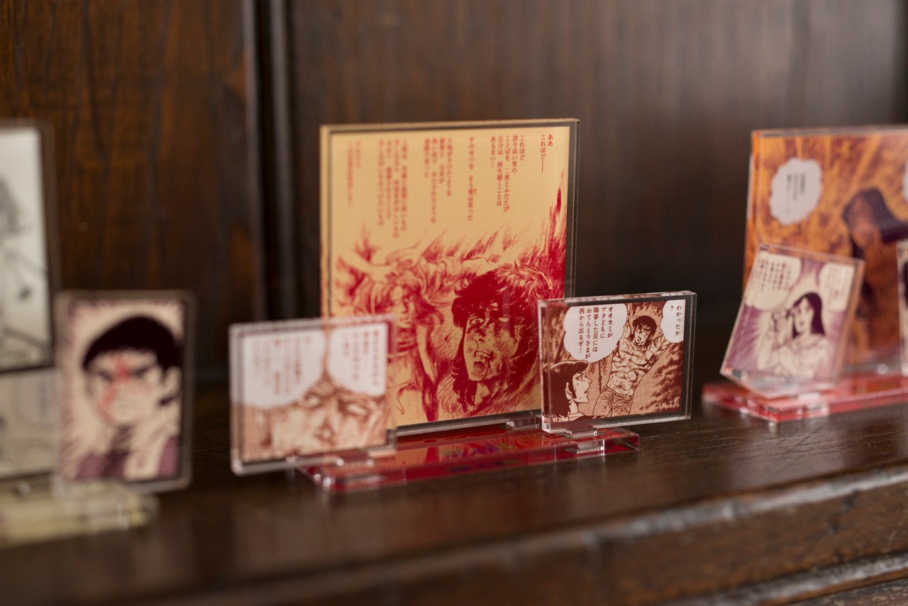 作品中の名場面をジオラマにしたアクリルスタンド(組み立て式)。愛と誠の出逢い、高原由紀、大賀誠、岩清水弘、早乙女愛の全5種。